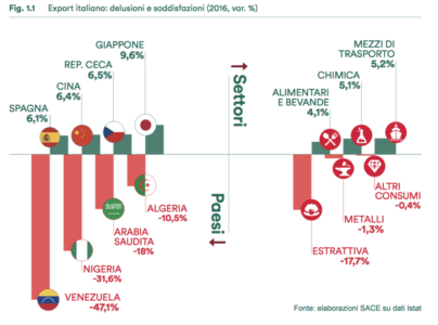 Ma non solo; potrebbero riprendersi anche molti paesi hanno subito forti perdite in questi ultimi anni. Il sud America per esempio con in testa il Venezuela che solo nel 2016 ha perso il 47% dell’import dall’Italia.